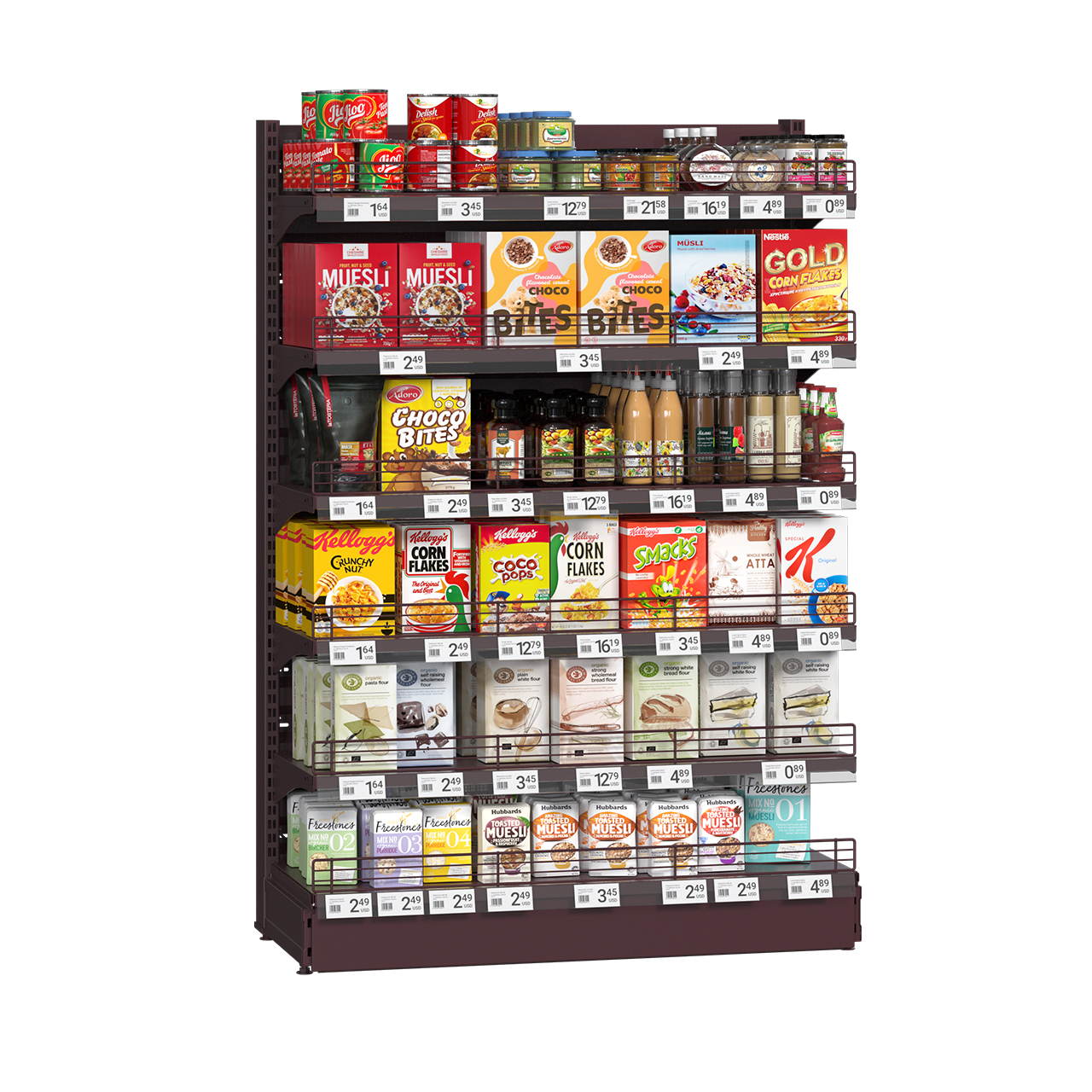 The FS Shelving System is engineered to maximise retail floorspace by utilising otherwise wasted space. Designed with flexibility in mind, it features a middle pack panel option that allows for increased product display. Additionally, gondola bays can share back panels, making the system more cost-effective for customers.